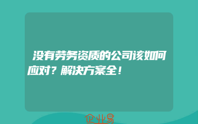 - 没有劳务资质的公司该如何应对?解决方案全!