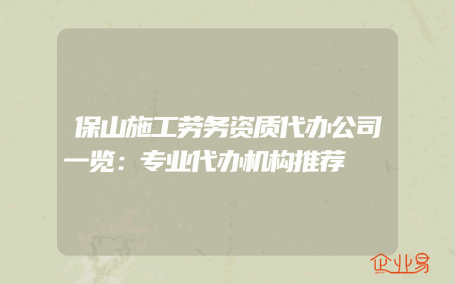 - 保山施工劳务资质代办公司一览:专业代办机构推荐