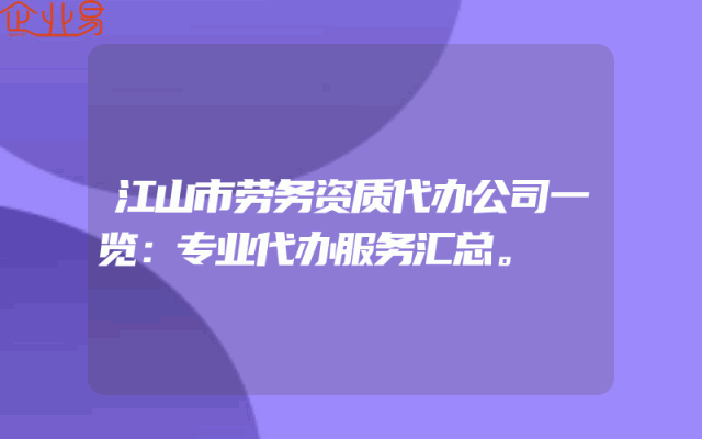 - 江山市劳务资质代办公司一览:专业代办服务汇总。