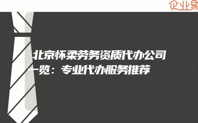 - 北京怀柔劳务资质代办公司一览:专业代办服务推荐