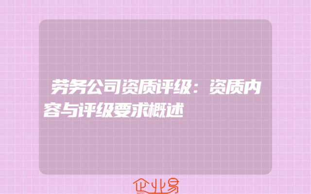 - 劳务公司资质评级:资质内容与评级要求概述
