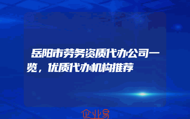 - 岳阳市劳务资质代办公司一览,优质代办机构推荐