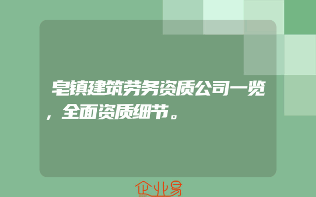 - 皂镇建筑劳务资质公司一览,全面资质细节。