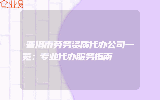 - 普洱市劳务资质代办公司一览:专业代办服务指南