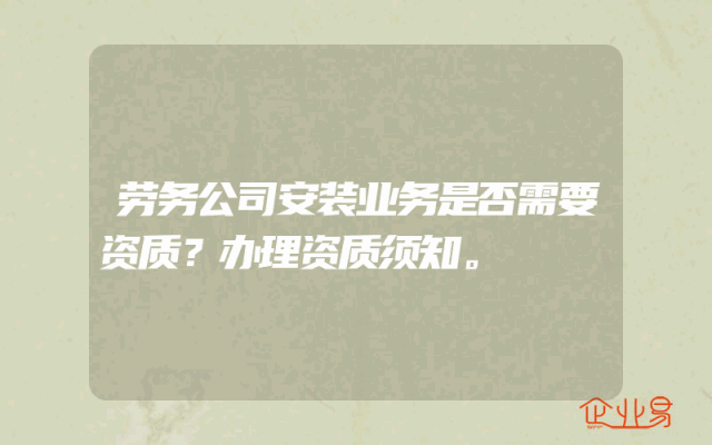 - 劳务公司安装业务是否需要资质?办理资质须知。