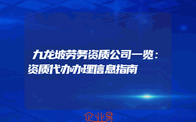 - 九龙坡劳务资质公司一览:资质代办办理信息指南