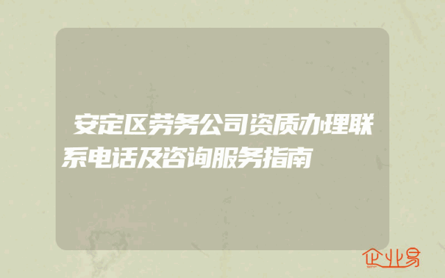 - 安定区劳务公司资质办理联系电话及咨询服务指南