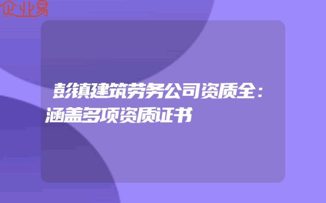 - 彭镇建筑劳务公司资质全:涵盖多项资质证书