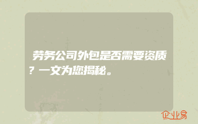 - 劳务公司外包是否需要资质?一文为您揭秘。