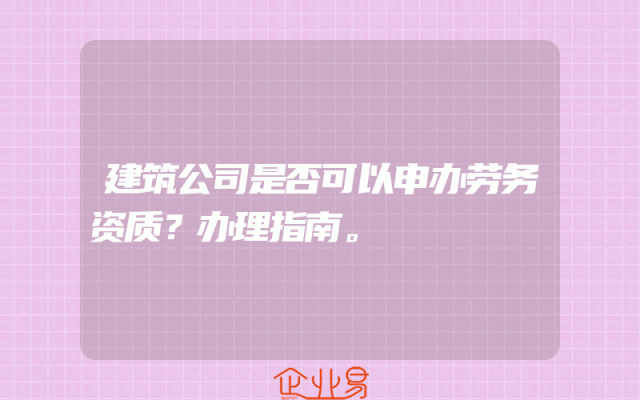 - 建筑公司是否可以申办劳务资质?办理指南。