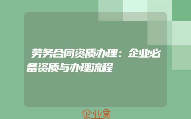 - 劳务合同资质办理:企业必备资质与办理流程