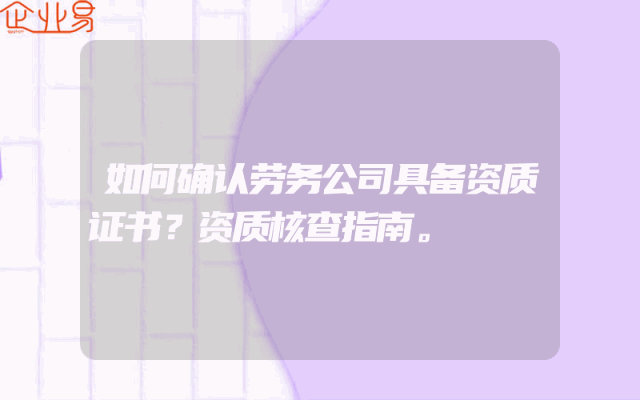 - 如何确认劳务公司具备资质证书?资质核查指南。