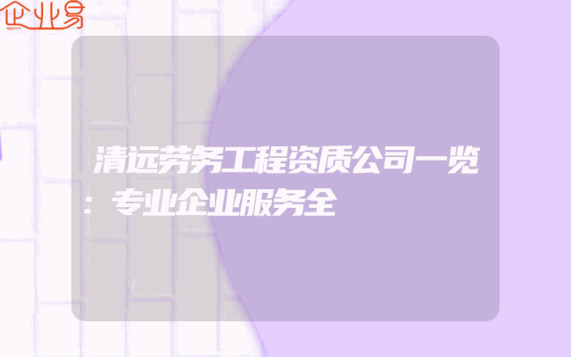 - 清远劳务工程资质公司一览:专业企业服务全解析一、清远劳务工程资质公司的概述随着建筑行业的蓬勃发展,清远劳务工程资质公司在当地及至整个行业内逐渐崭露头角。这类公司专注于为企业提供各类资质办理服务,包括但不限于工程劳务、施工总承包、专业承包等资