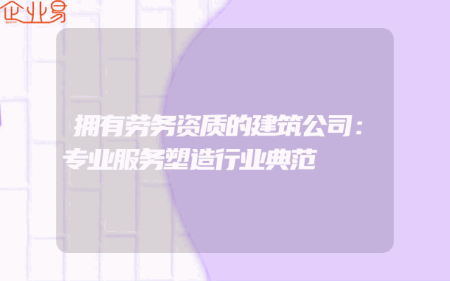 - 拥有劳务资质的建筑公司:专业服务塑造行业典范