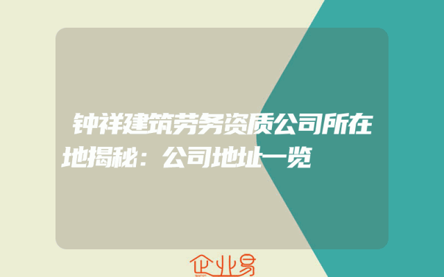 - 钟祥建筑劳务资质公司所在地揭秘:公司地址一览