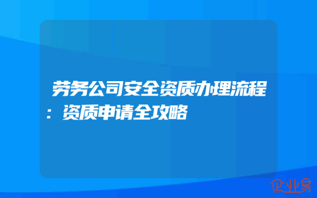 - 劳务公司安全资质办理流程:资质申请全攻略