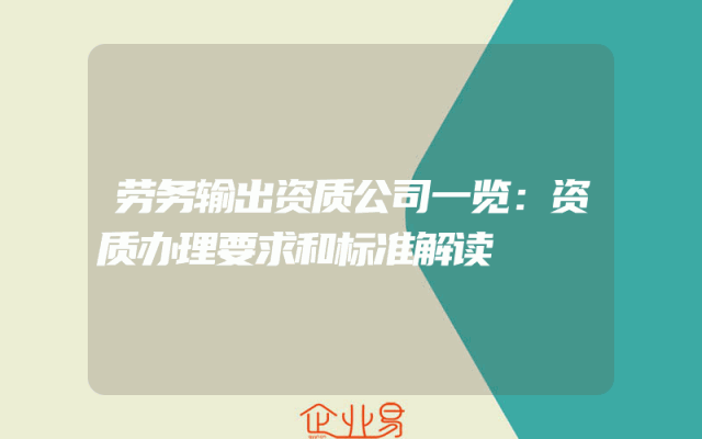 - 劳务输出资质公司一览:资质办理要求和标准解读