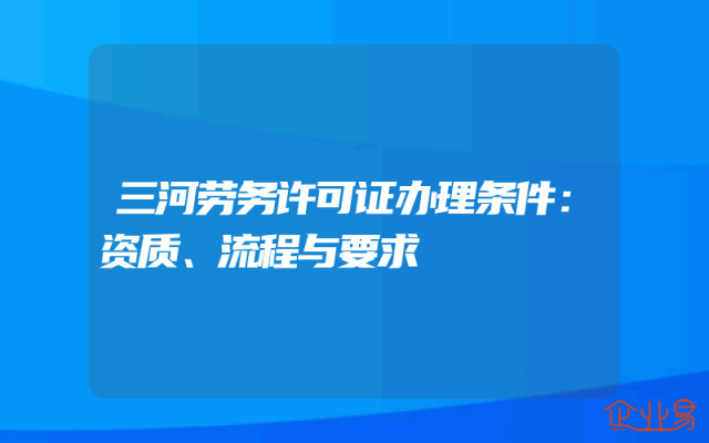- 三河劳务许可证办理条件:资质、流程与要求