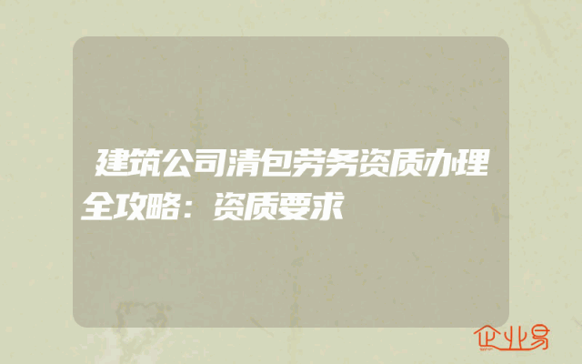 - 建筑公司清包劳务资质办理全攻略:资质要求