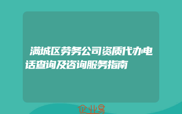 - 满城区劳务公司资质代办电话查询及咨询服务指南