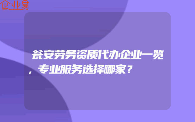 - 瓮安劳务资质代办企业一览,专业服务选择哪家?