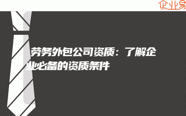 - 劳务外包公司资质:了解企业必备的资质条件