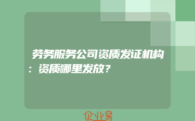 - 劳务服务公司资质发证机构:资质哪里发放?