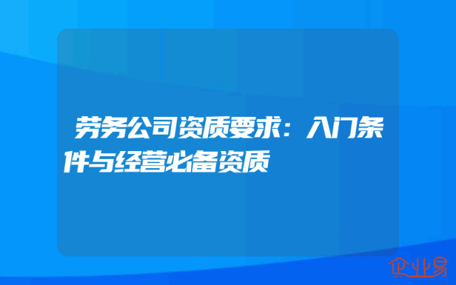 - 劳务公司资质要求:入门条件与经营必备资质