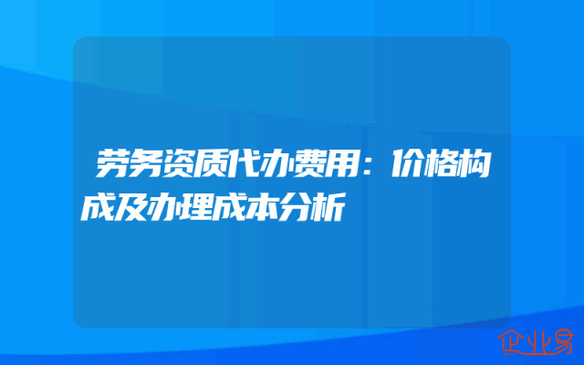 - 劳务资质代办费用:价格构成及办理成本分析