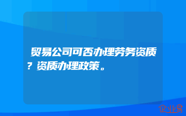 - 贸易公司可否办理劳务资质?资质办理政策。