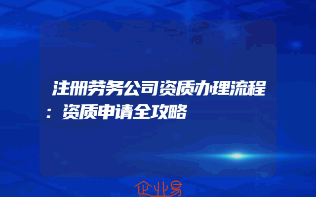 - 注册劳务公司资质办理流程:资质申请全攻略