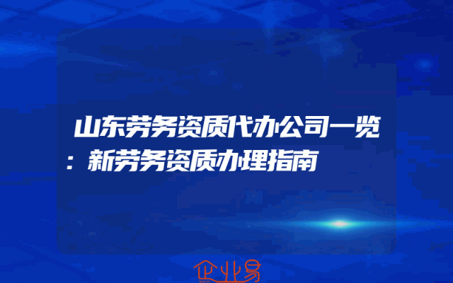 - 山东劳务资质代办公司一览:新劳务资质办理指南
