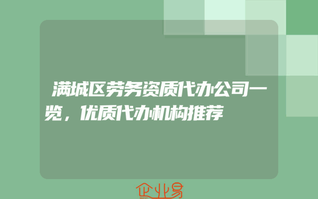 - 满城区劳务资质代办公司一览,优质代办机构推荐