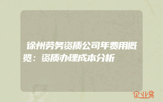 - 徐州劳务资质公司年费用概览:资质办理成本分析