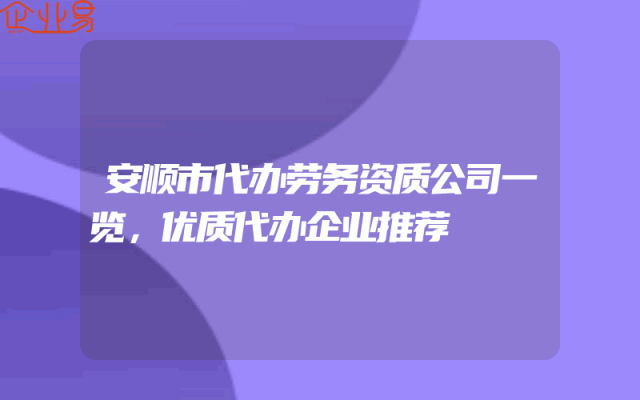 - 安顺市代办劳务资质公司一览,优质代办企业推荐