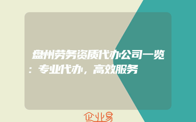 - 盘州劳务资质代办公司一览:专业代办,高效服务