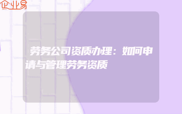 - 劳务公司资质办理:如何申请与管理劳务资质