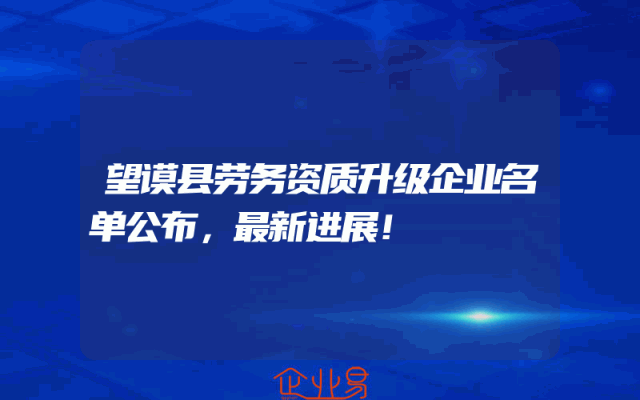 - 望谟县劳务资质升级企业名单公布,最新进展!
