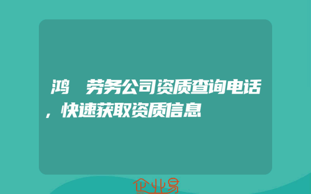 - 鸿燊劳务公司资质查询电话,快速获取资质信息