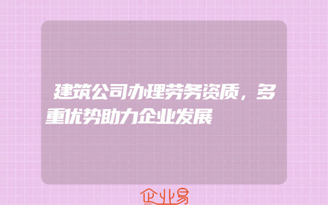 - 建筑公司办理劳务资质,多重优势助力企业发展