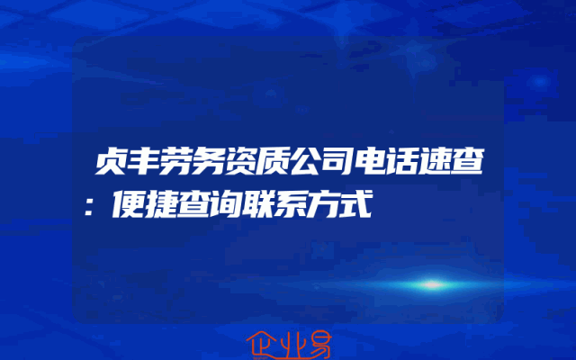 - 贞丰劳务资质公司电话速查:便捷查询联系方式