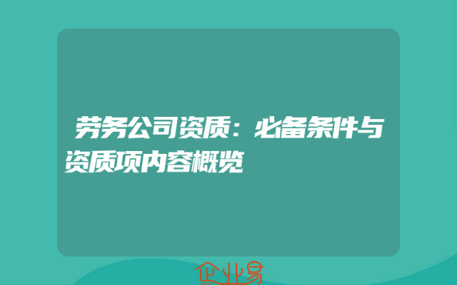 - 劳务公司资质详解:必备条件与资质项内容概览一、劳务公司资质概述劳务公司,顾名思义,主要从事劳务派遣相关业务。在我国,从事劳务派遣业务需具备相应资质,以保证行业的规范化发展。劳务公司资质是企业在劳务市场中稳定经营的重要前提,对于保障劳动者权益