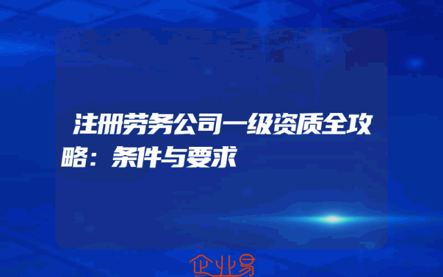 - 注册劳务公司一级资质全攻略:条件与要求详解引言在现代服务业快速发展的背景下,劳务公司扮演着越来越重要的角色。想要合法经营并提升服务质量,获取一级资质成为众多劳务公司的目标。本文将详细解读注册劳务公司一