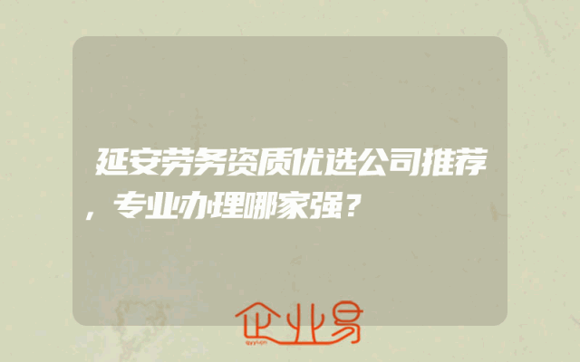 - 延安劳务资质优选公司推荐,专业办理哪家强?