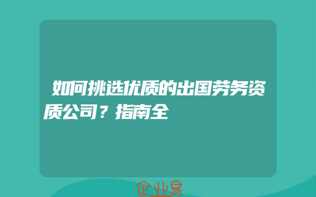 - 如何办理对外派遣劳务公司的资质?详细指南!