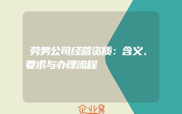 - 劳务资质代办公司:定义、作用及办理流程简介