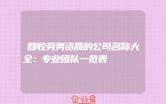 - 回收劳务资质的公司名称大全:专业团队一览表
