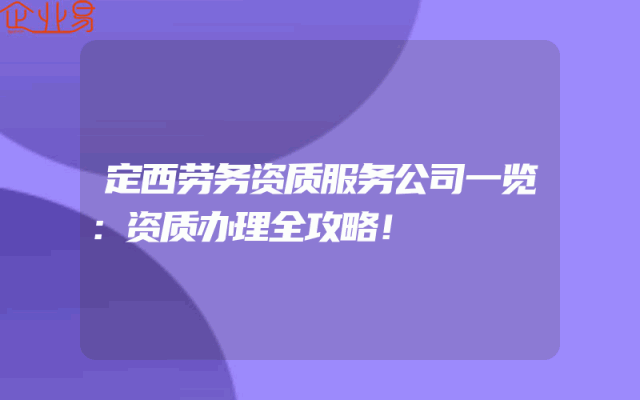 - 定西劳务资质服务公司一览:资质办理全攻略!