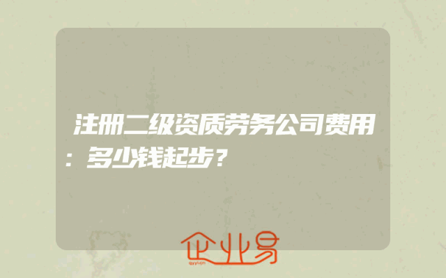 - 注册二级资质劳务公司费用详解:多少钱起步?一、前言随着经济的发展和劳动力市场的繁荣,劳务公司如雨后春笋般涌现。注册一家拥有二级资质的劳务公司,是许多创业者的目标。但注册费用并非一成不变,会受到多种因素的影响。本文将详细解析注册二级资质劳务公