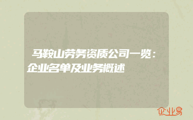 - 马鞍山劳务资质公司一览:企业名单及业务概述